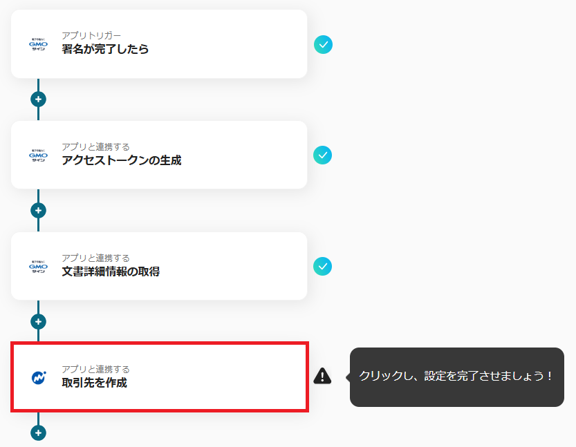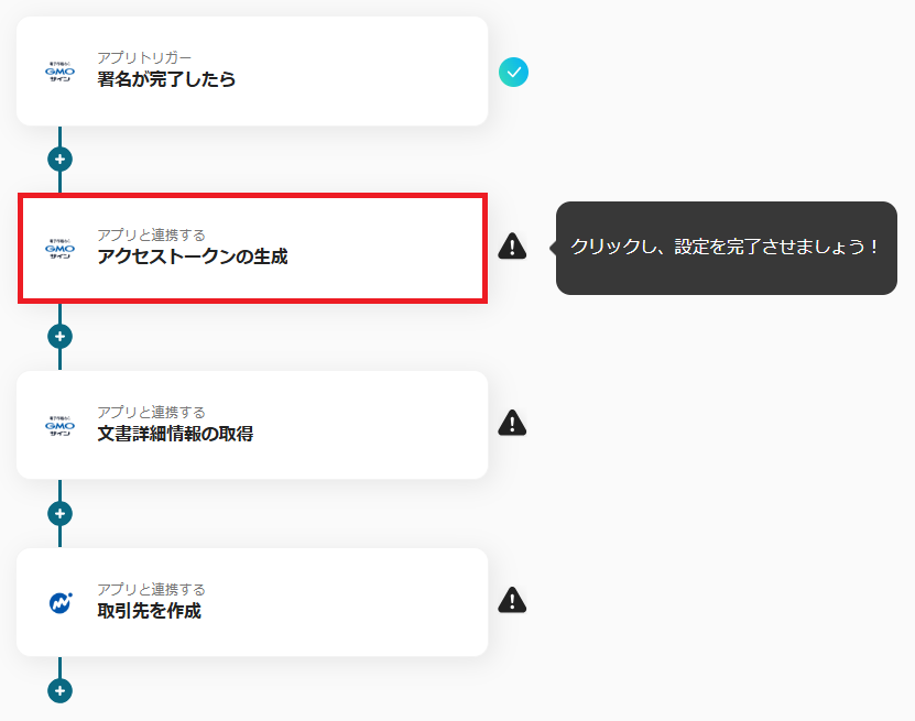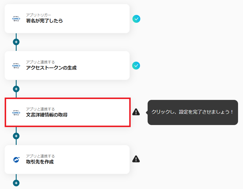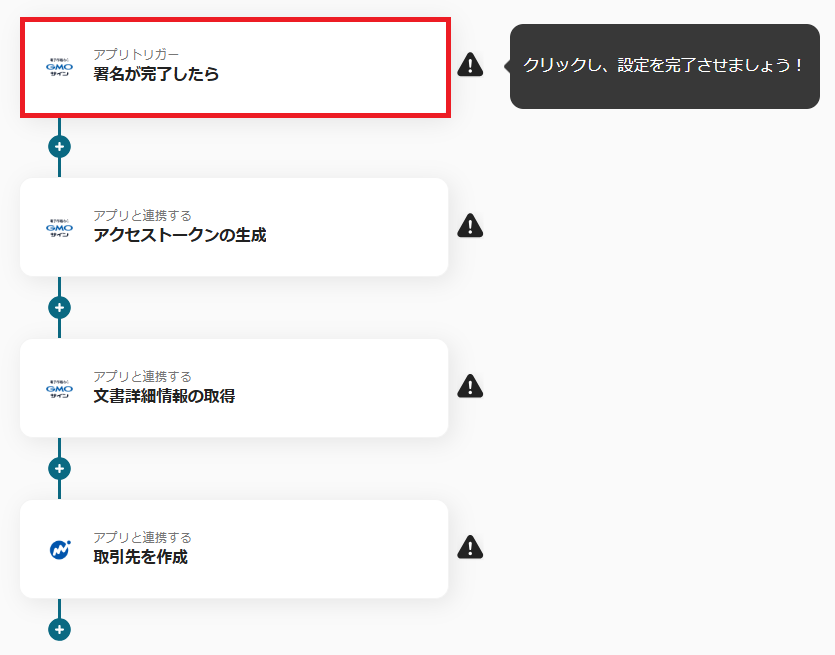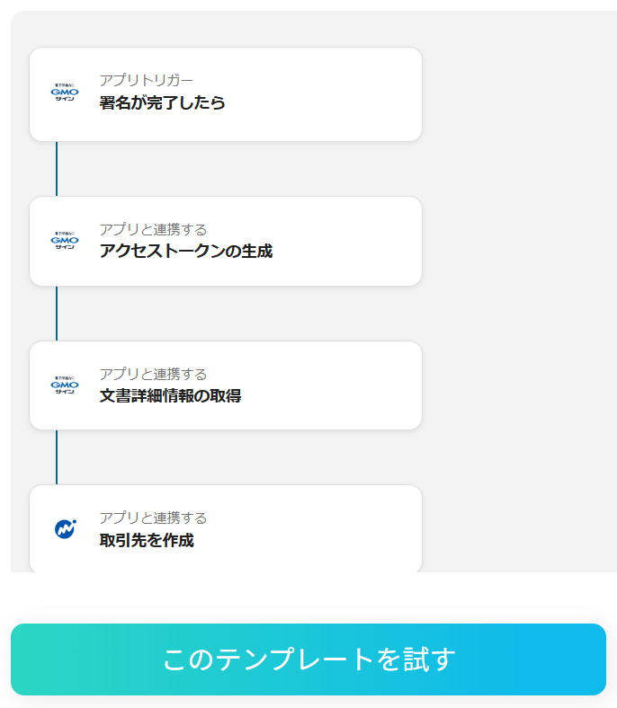 このフローではGMOサインで締結が完了するとトリガーが起動します。