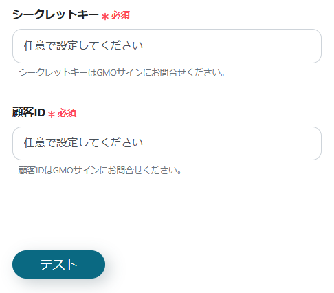 7.シークレットキーと顧客IDを設定し、テストを行います。