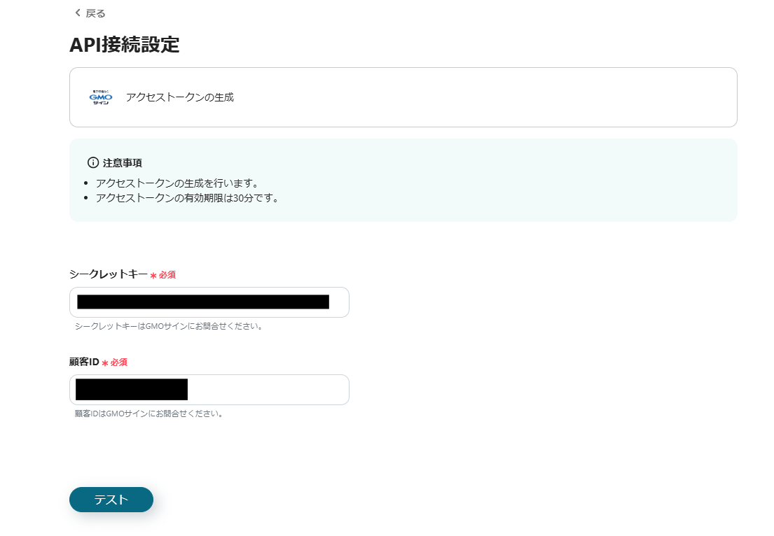 「シークレットキー」「顧客ID」は、入力欄下の説明に従って、入力してください。