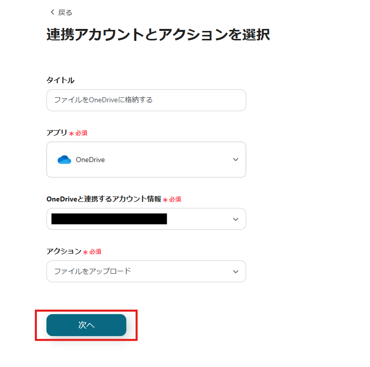 9.アプリと連携する「ファイルをOneDriveに格納する」をクリックしてください。
