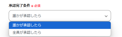 「承認完了条件」は、入力欄をクリックして表示されるプルダウンから選択してください。