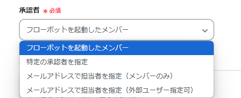 「承認者」は、入力欄をクリックして表示されるプルダウンから選択してください。