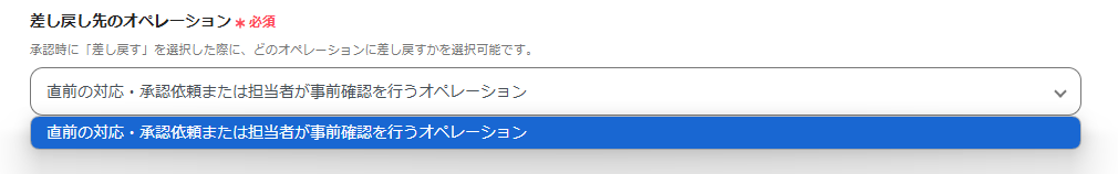 「差し戻し先のオペレーション」は、入力欄をクリックして表示されるプルダウンから選択してください。
