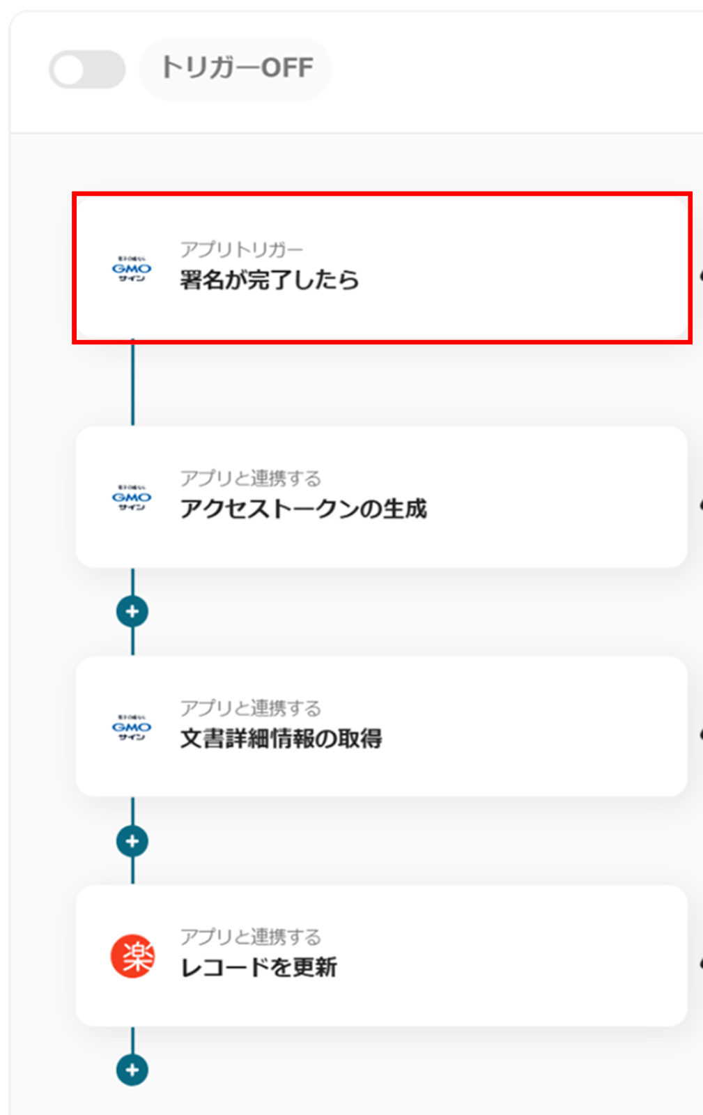 それでは、実際にテンプレートを使用して「GMOサインで契約が完了したら楽楽販売の情報を更新する」フローを一緒に作っていきましょう!