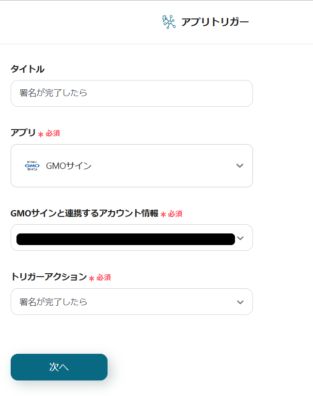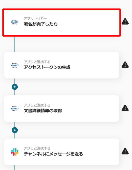 今回のフローは「GMOサインで契約が完了したらSlackに通知する」というものです。