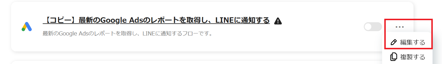 マイアプリ登録が完了したら、「最新のGoogle Adsのレポートを取得し、LINEに通知する」フローボットを作成していきます。