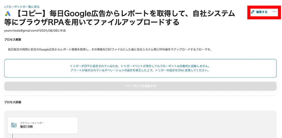 コピーされたら、右上の「編集する」をクリックで、各オペレーションの編集に進みます。