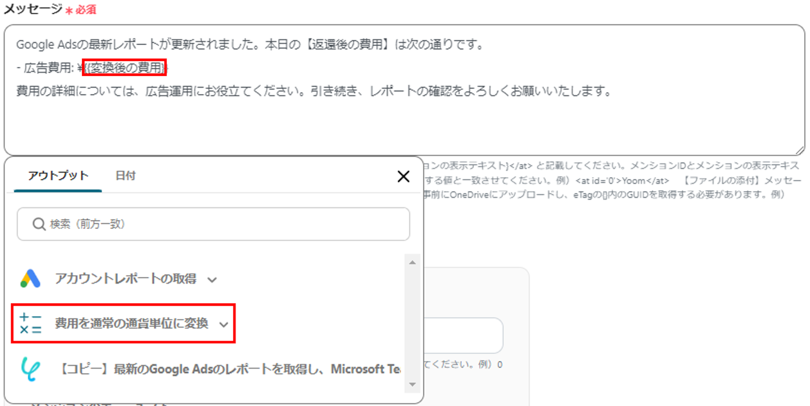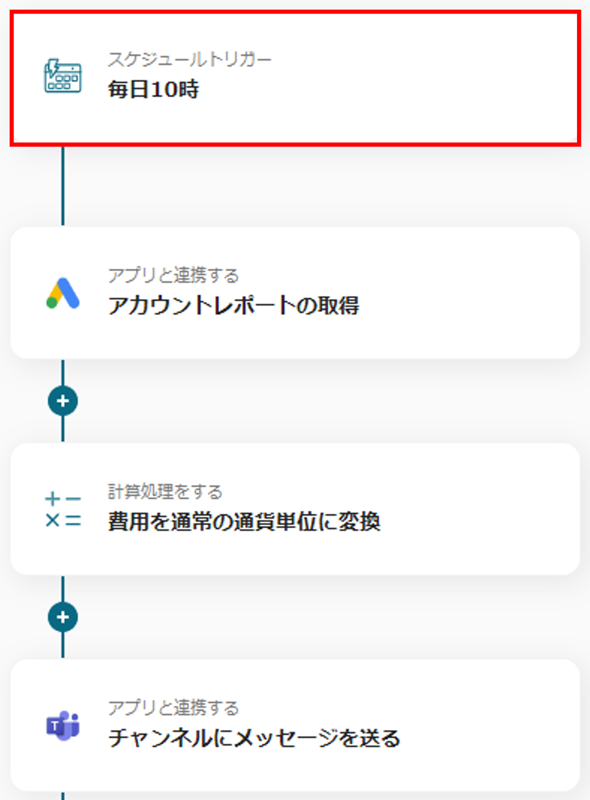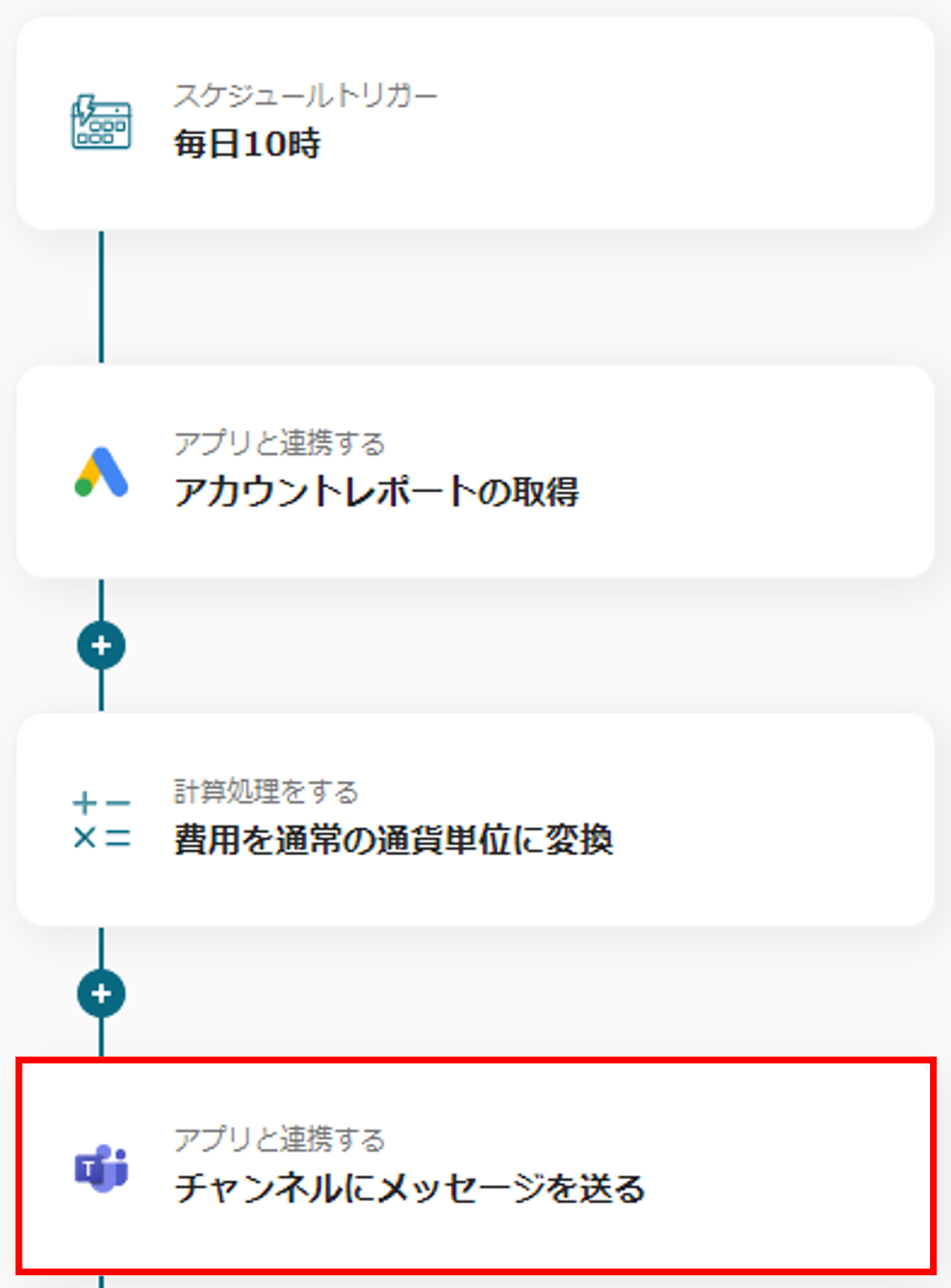 Google Adsのレポートが毎日決まった時間に自動で取得され、その結果がMicrosoft Teamsに通知されることで、チーム全員が定期的に最新のデータを確認できる環境が整うでしょう。