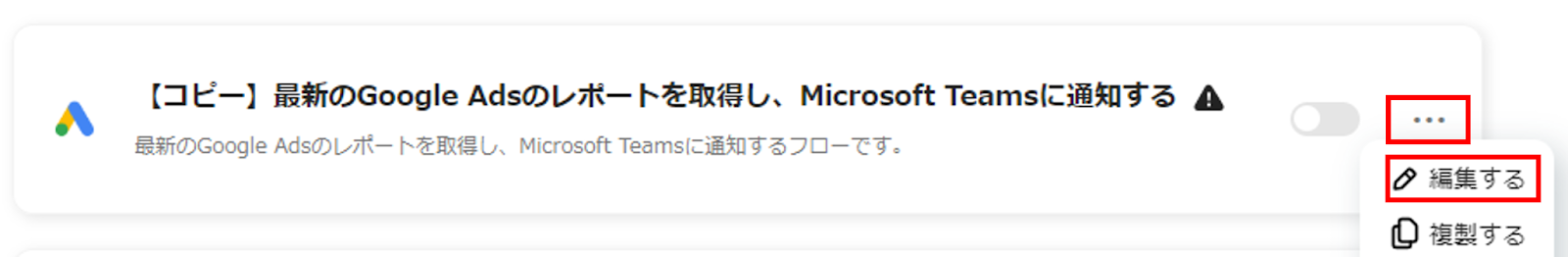 ここからは「最新のGoogle Adsのレポートを取得し、Microsoft Teamsに通知する」フローの設定についてご紹介します。