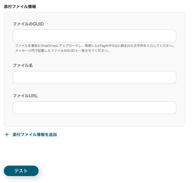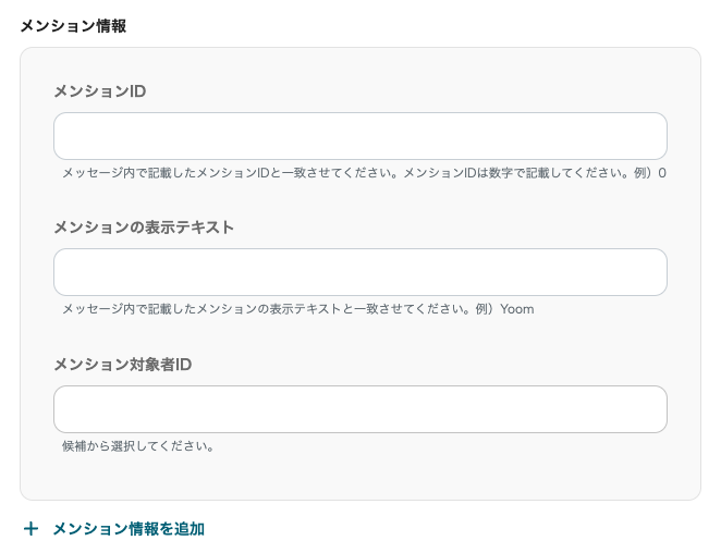 メンションの設定と添付ファイルの設定エリアがありますが、こちらは任意で設定を行ってください。