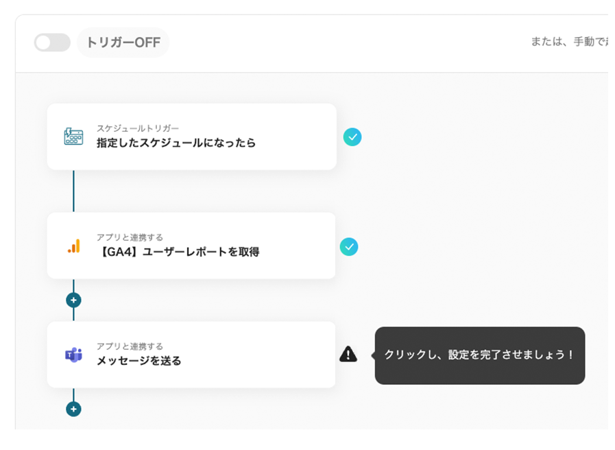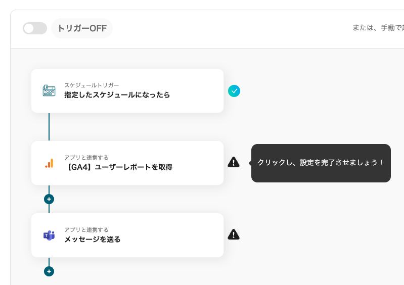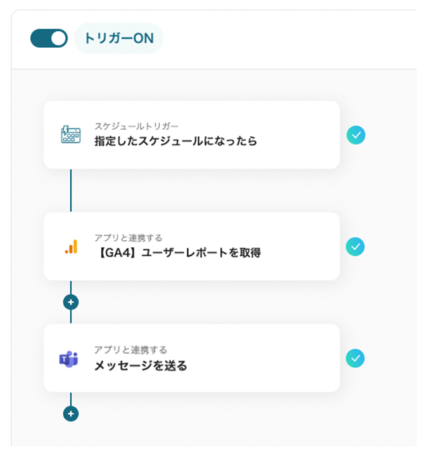 そこで、Yoomでは「毎日Google アナリティクスから最新のレポートを取得し、Microsoft Teamsに通知する」フローボットを開発しました。Microsoft Teamsと連携することでレポートの自動通知が可能になり、手動作業が大きく減少します。毎日決まった時間にチーム全員が最新のデータを一斉に受け取ることで、迅速に情報を共有でき、業務の効率向上が期待できます。
