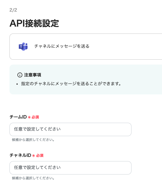 テンプレートの3つ目をクリック!このプロセスではMicrosoft Teamsへ自動送信する内容を設定します。