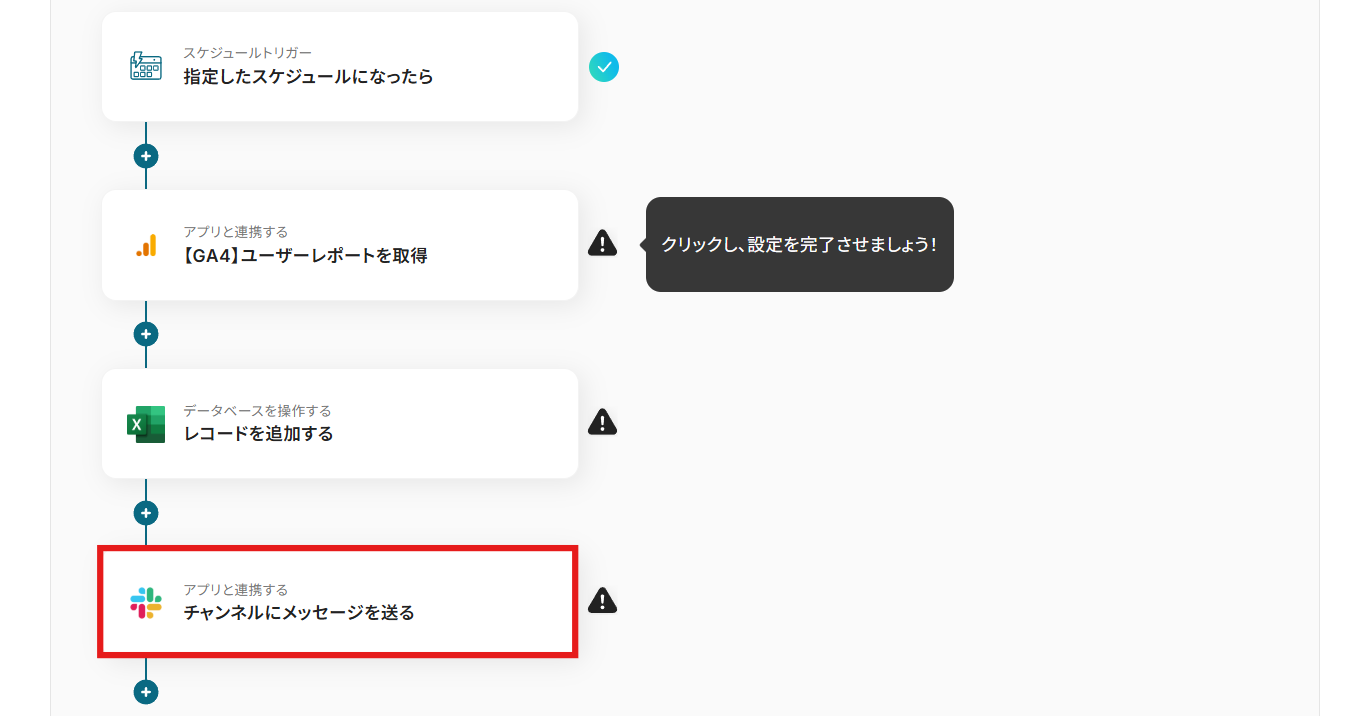 冒頭で紹介した「スケジュールトリガー」と「Google アナリティクス」は設定方法が同じとなります。