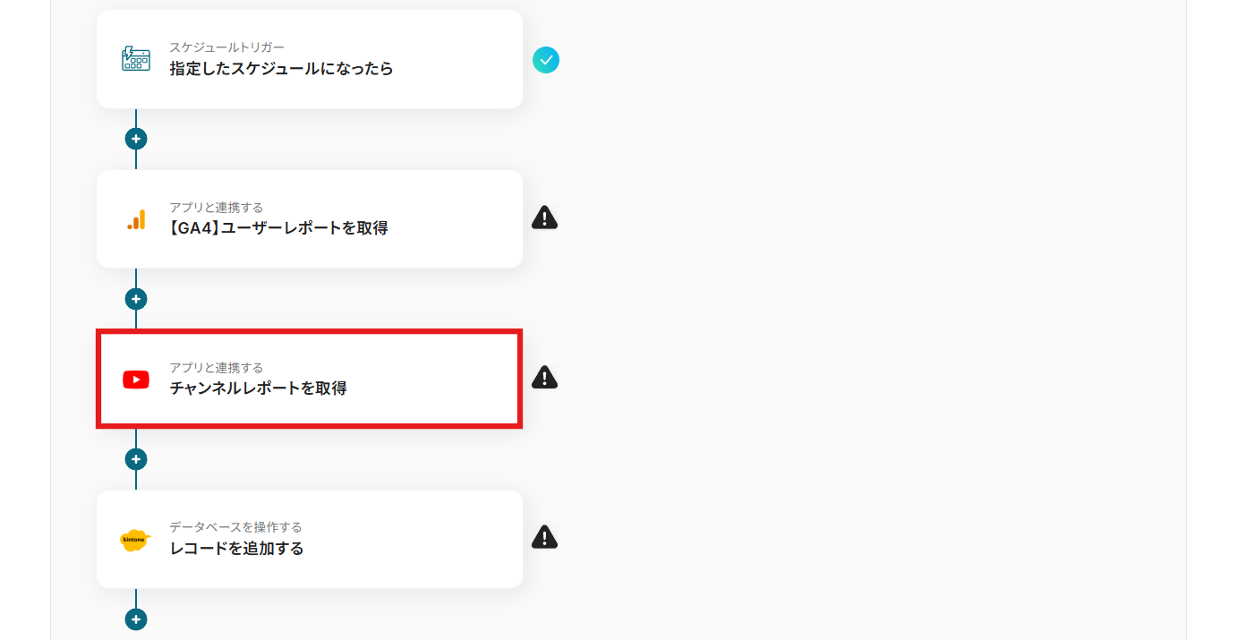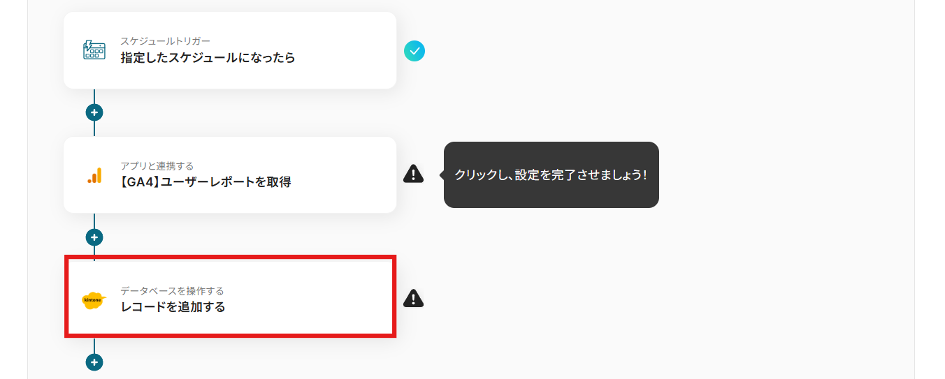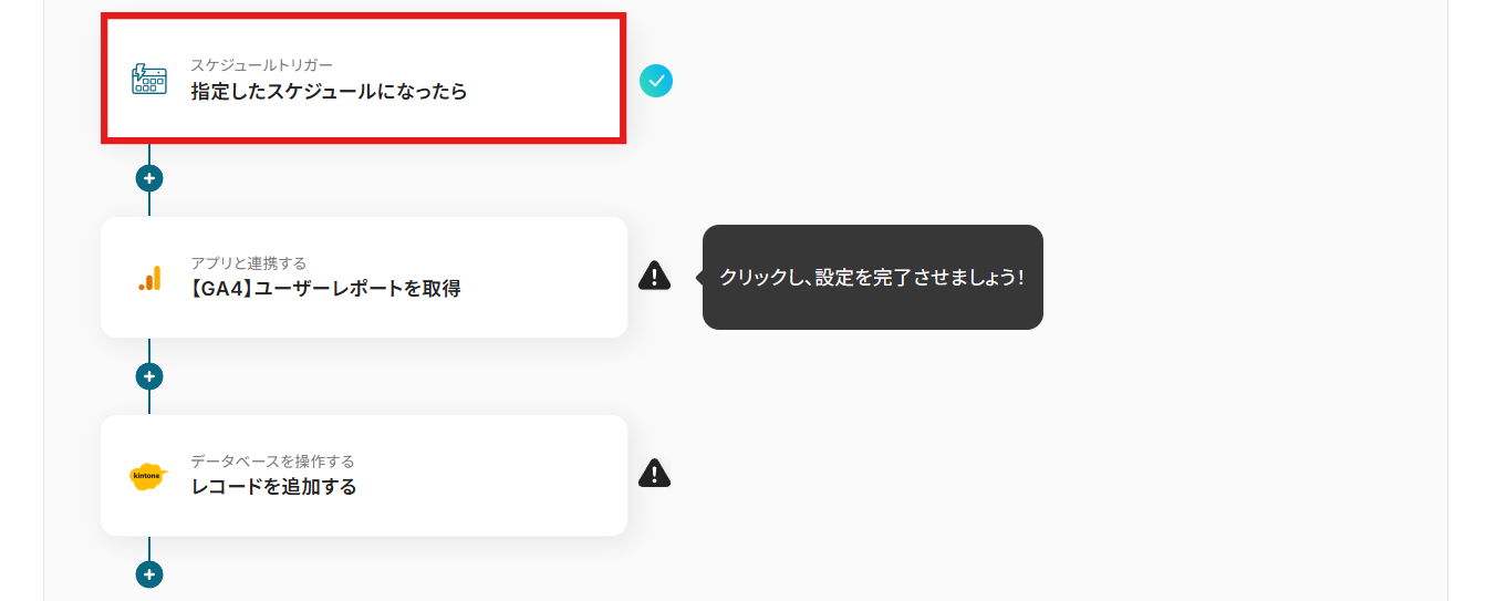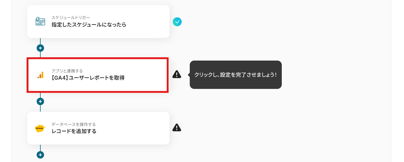 Yoomを利用することで、ノーコードで簡単に毎日Google アナリティクスから最新のレポートを取得し、kintoneに追加する連携が可能です。