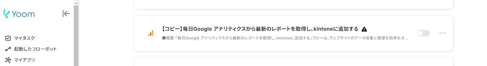 「【コピー】毎日Google アナリティクスから最新のレポートを取得し、kintoneに追加する」をクリックします。