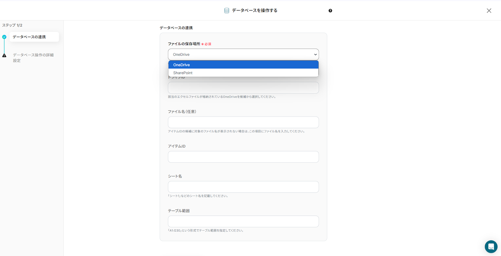 OneDrive、SharePointをプルダウンから選択しましょう。