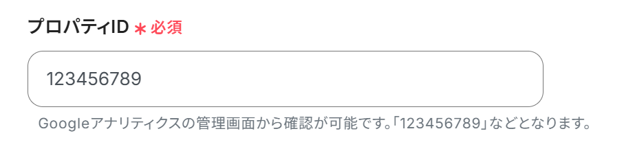 以下の画面が表示されたら、「プロパティID」を設定します。