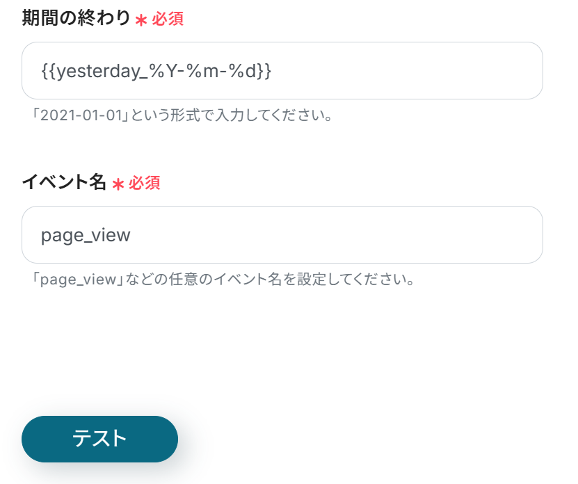 Yoomのスケジュールトリガーを活用して指定したスケジュールになったら、Google アナリティクスのAPIを介してイベントレポートを取得することで実現できます。