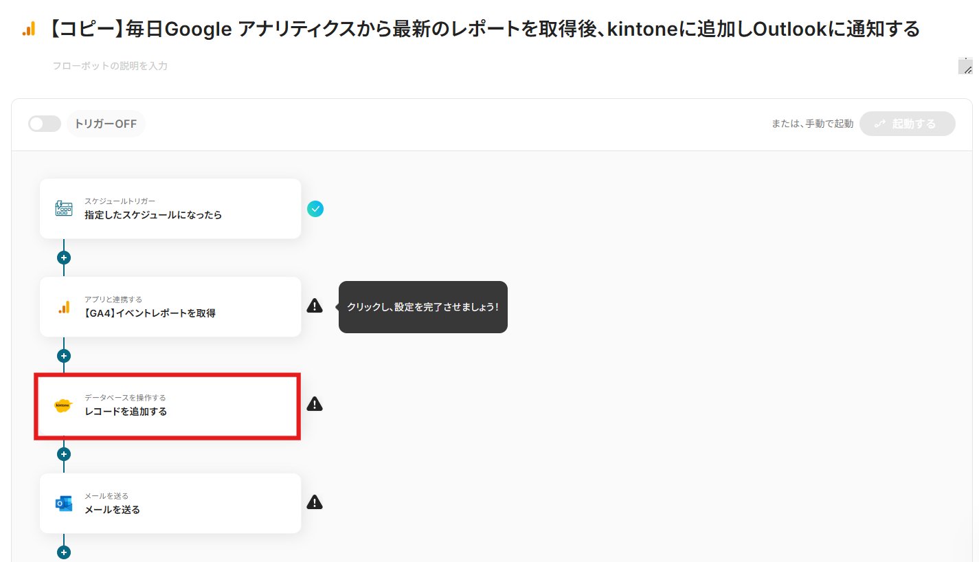 続いて、「毎日Google アナリティクスから最新のレポートを取得後、kintoneに追加しOutlookに通知する」方法をご説明します。