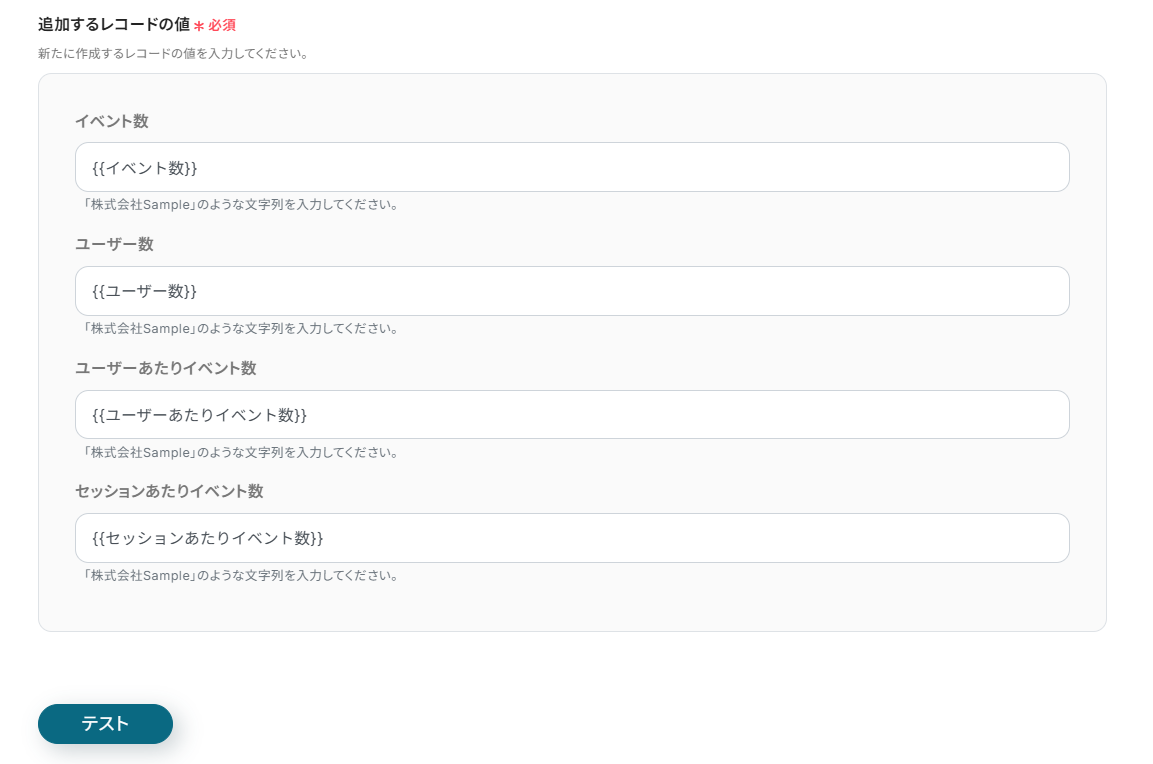 以下の画面が表示されるので、「追加するレコードの値」を設定してください。