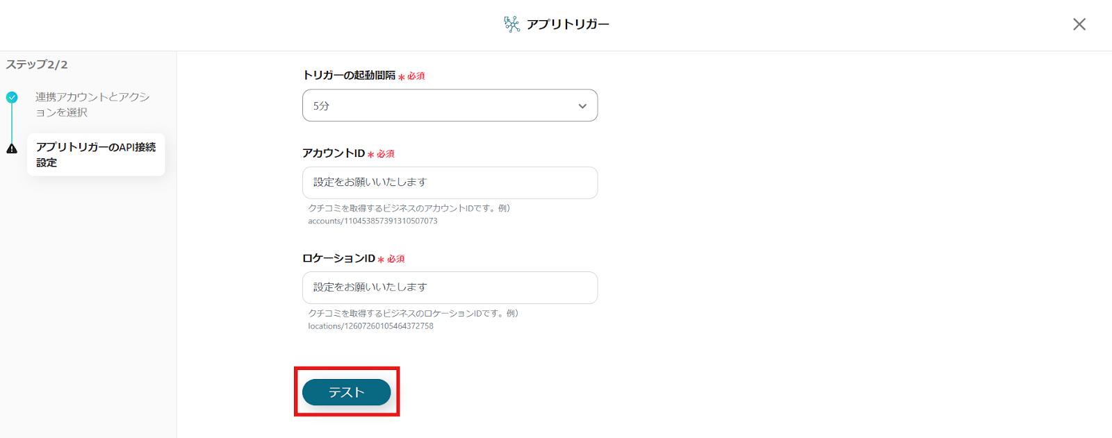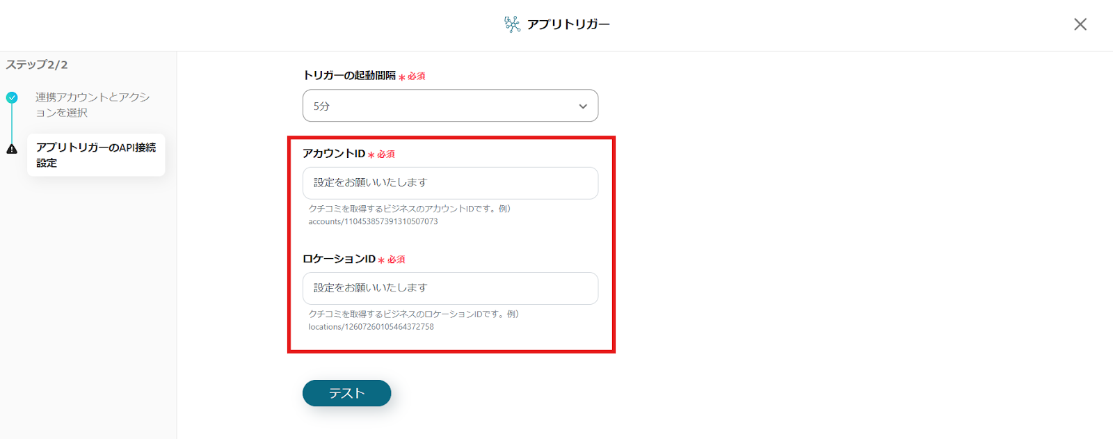 Googleビジネスプロフィールの各IDを、ボックス下部の補足に沿ってコピー&ペーストしてください。