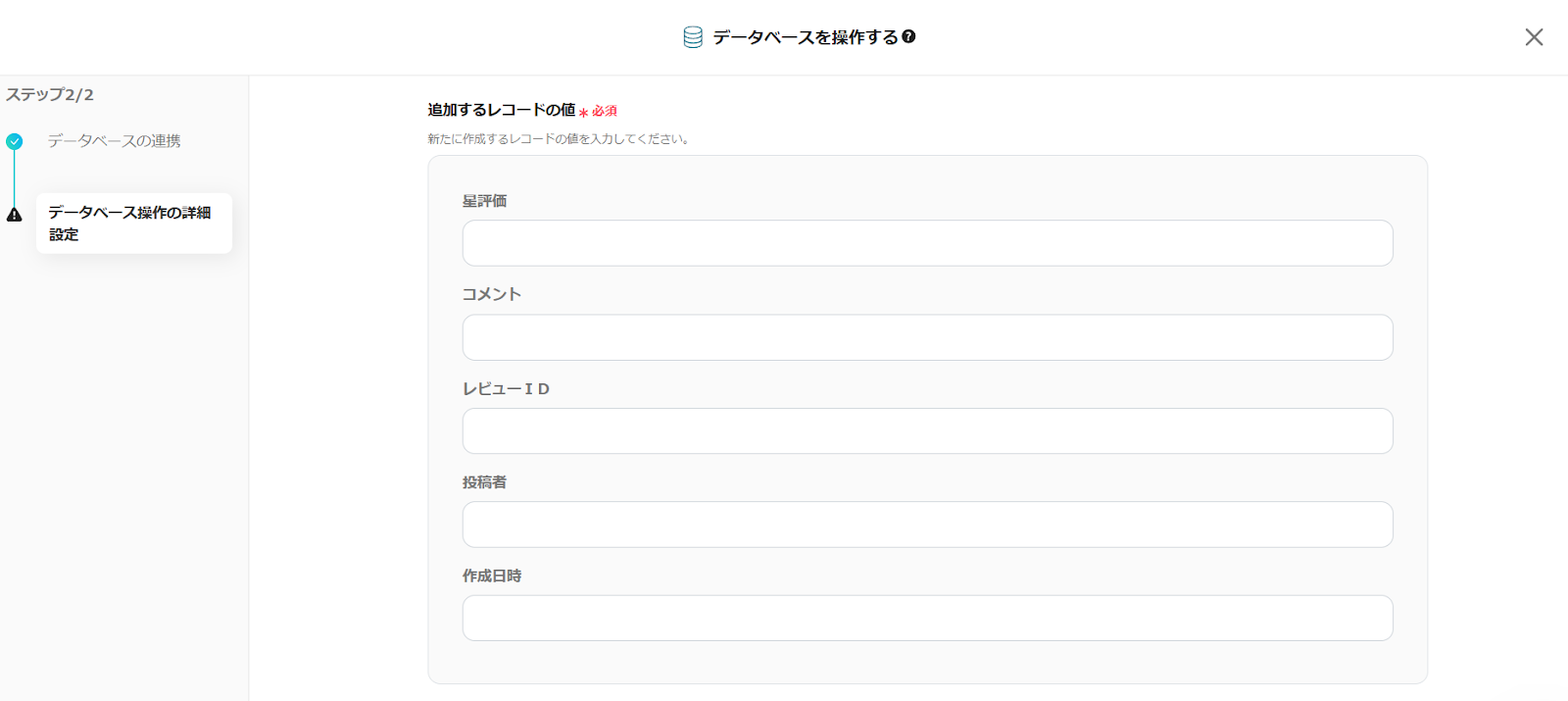 作成しておいた方が良いおすすめの項目は、主にレビューID、投稿者名、星評価、コメント、作成日時です。