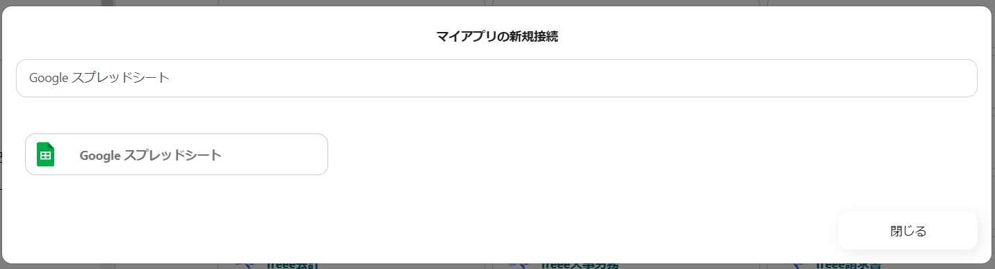 次はGoogle スプレッドシートの連携となりますが、Googleビジネスプロフィールと同じGoogleのサービスとなるため、マイアプリ連携の手順は同様です。