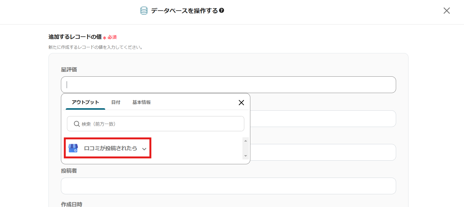 このテンプレートは、Google ビジネス プロフィールで口コミが投稿されるとkintoneのレコードに追加することができます。
