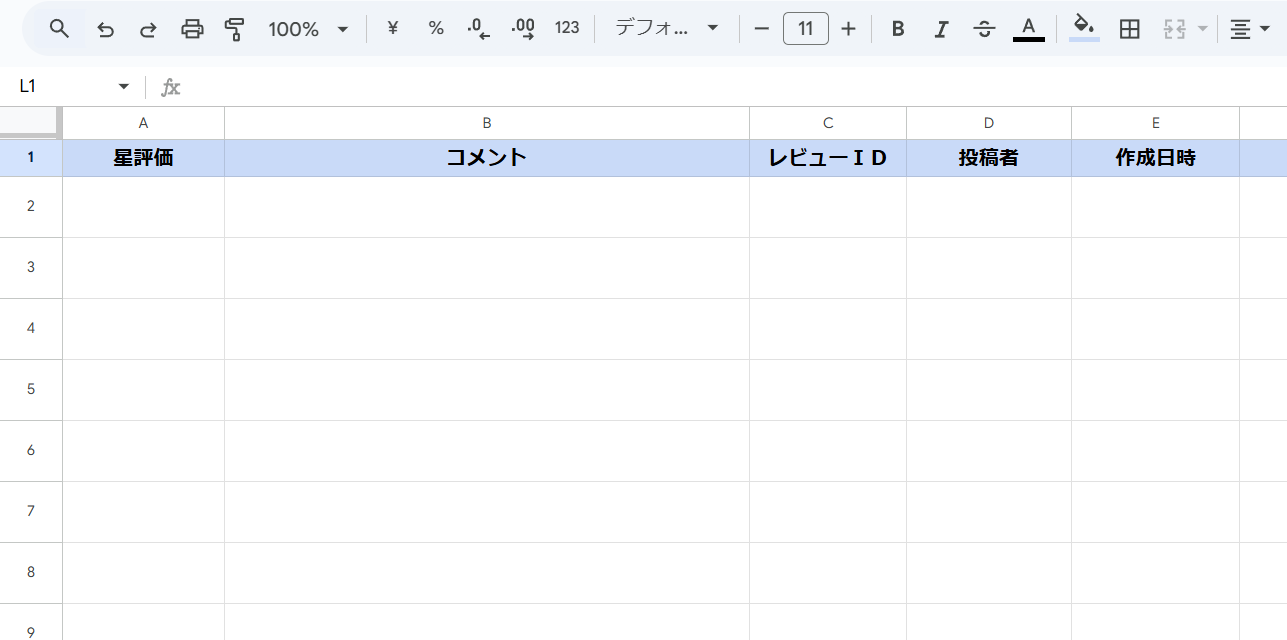 Googleビジネスプロフィールの口コミデータを蓄積するシートを作成しましょう。