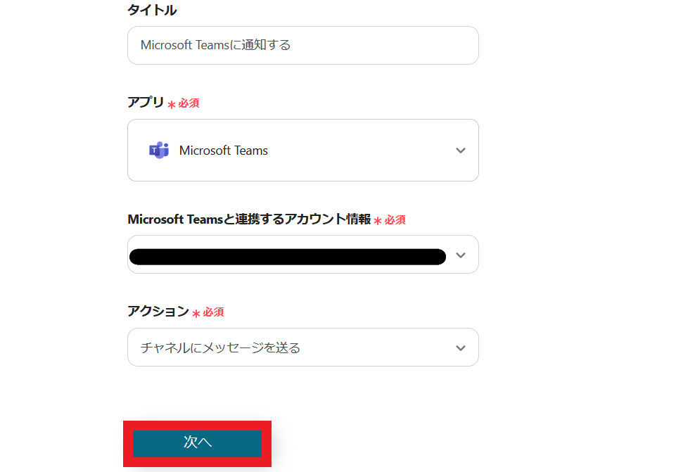 2.Microsoft Teamsと連携するアカウント情報を入力します。