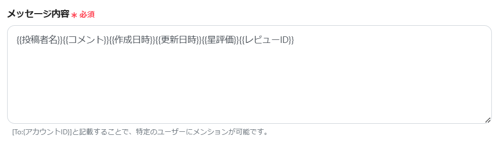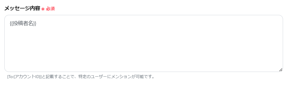 Chatworkに投稿するメッセージを設定します。ボックスをクリックしましょう。