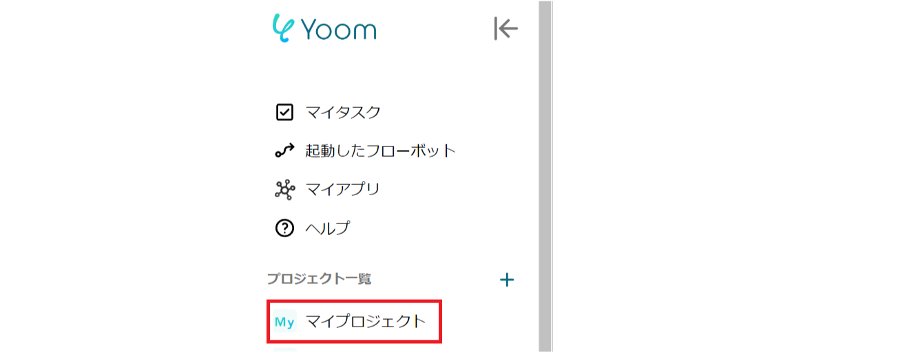 Yoomの登録が完了すると、フローボットのテンプレートが「マイプロジェクト」にコピーされます。
