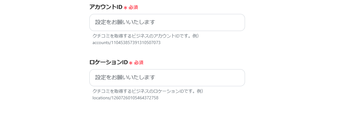 Google ビジネス プロフィールの各IDをコピー&ペーストして設定してください。
