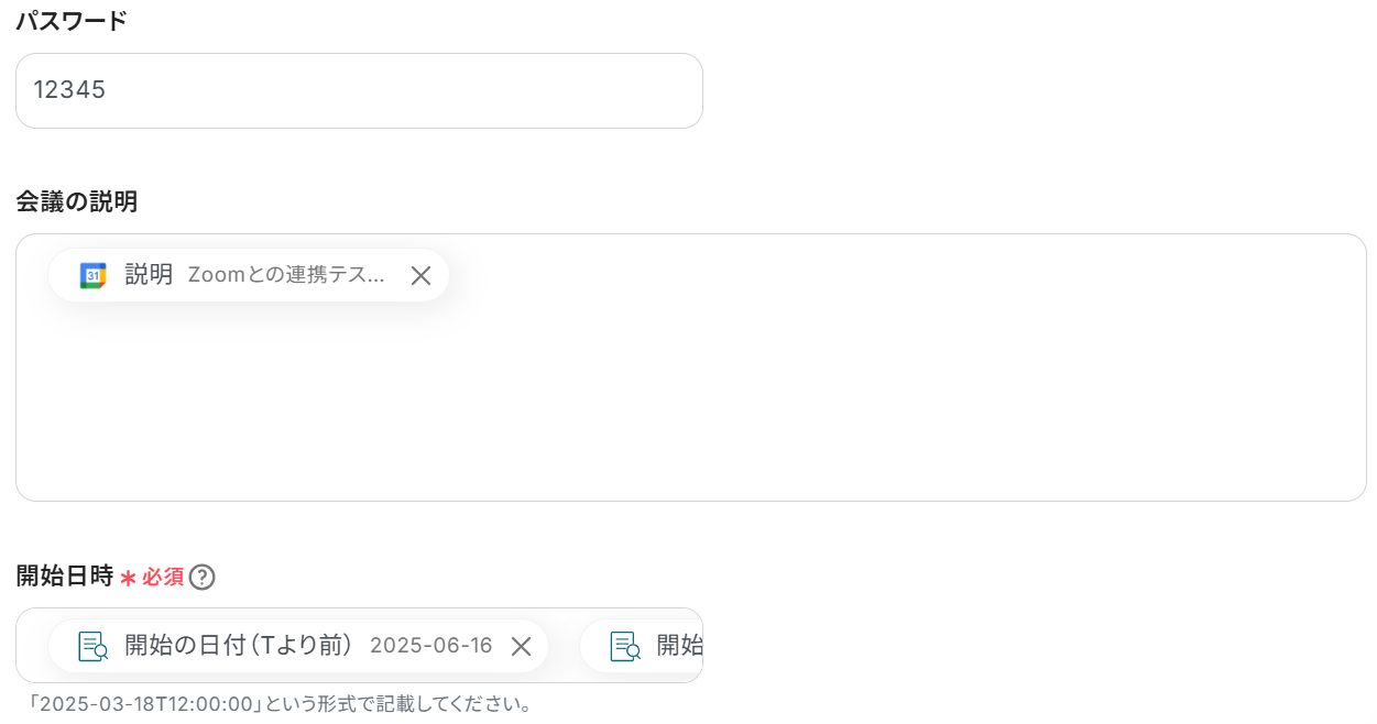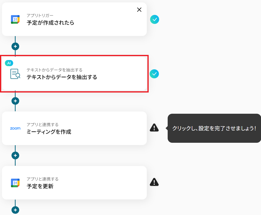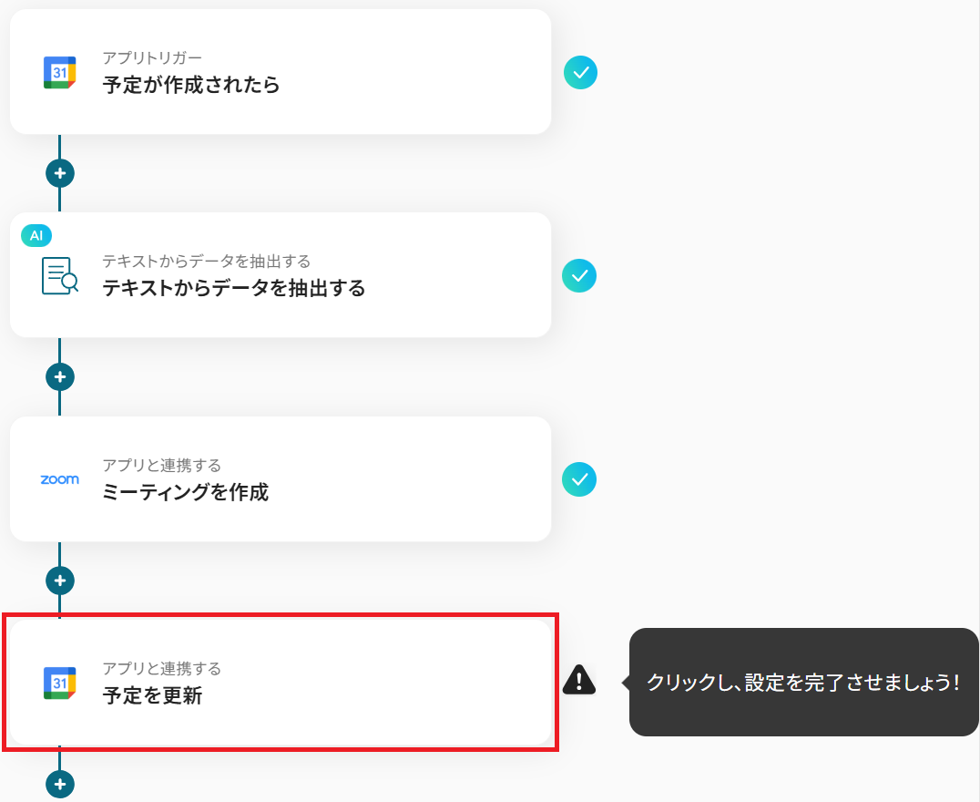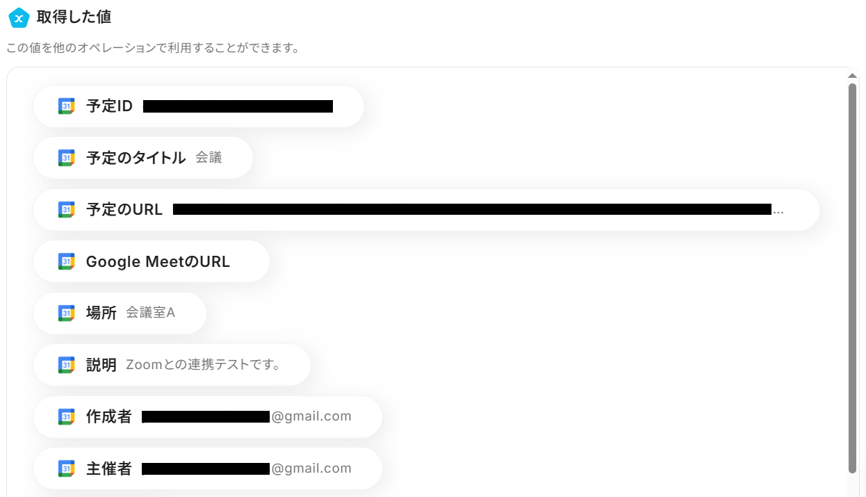 これまでのステップで取得したアウトプットを利用すると、GoogleカレンダーやZoomの情報を反映させることができます。