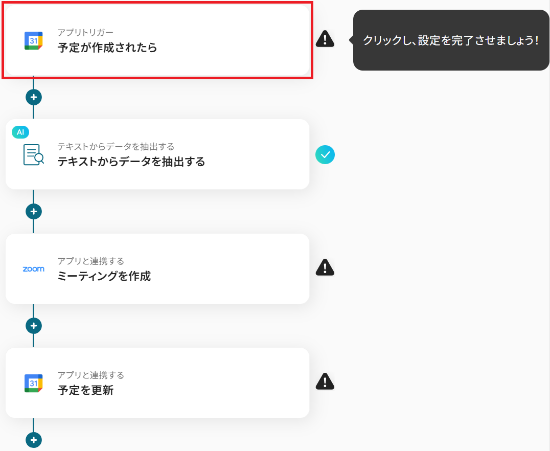 Googleカレンダーの「予定を作成」アクションは、特定のイベント完了後に次のアクションを促すためにも活用できます。