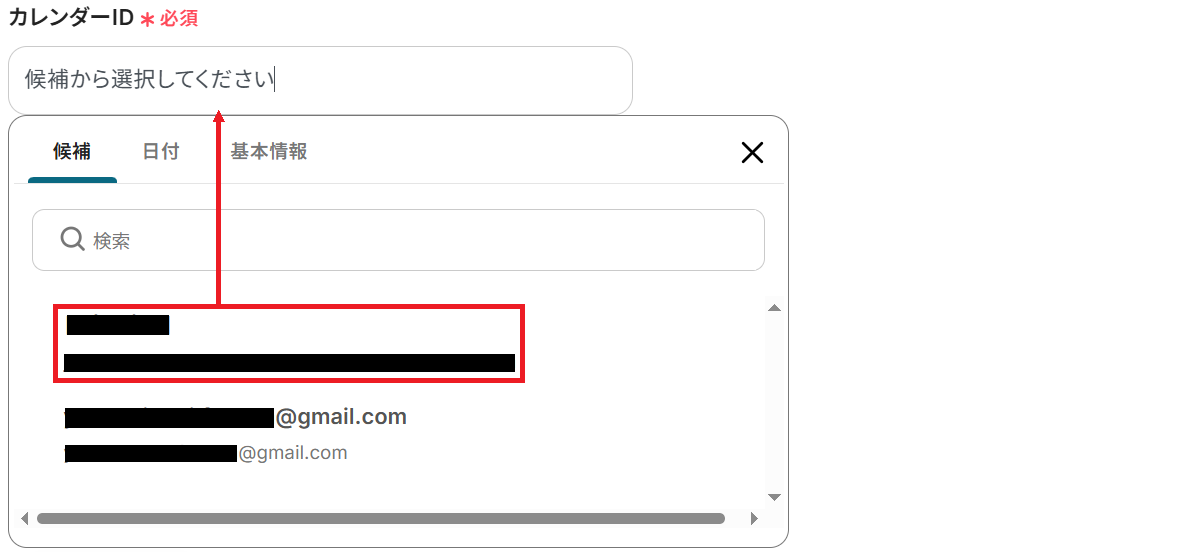 次に「カレンダーID」を候補から選択してください。