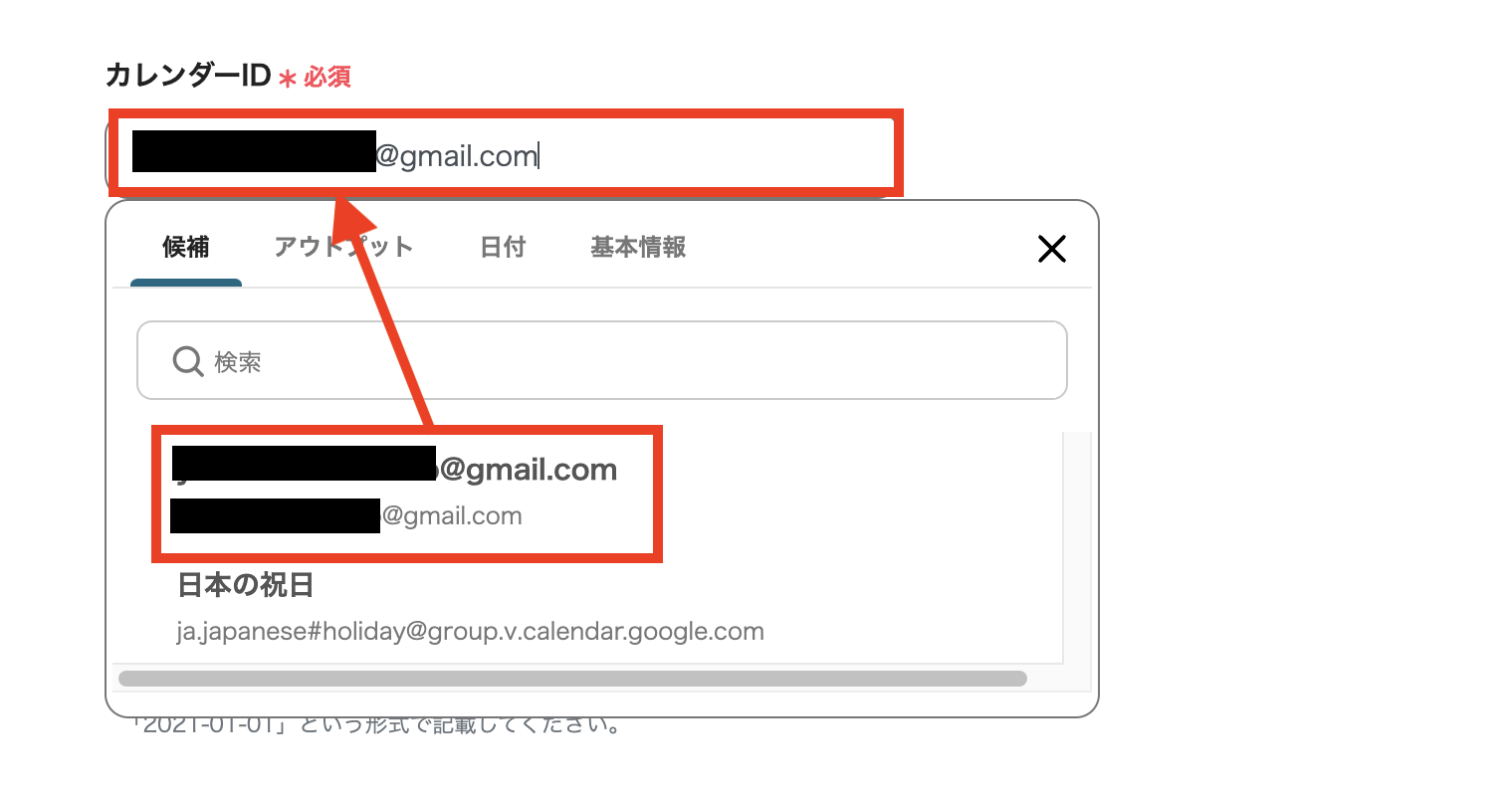 連携するアカウントを「カレンダーID」に入力します。