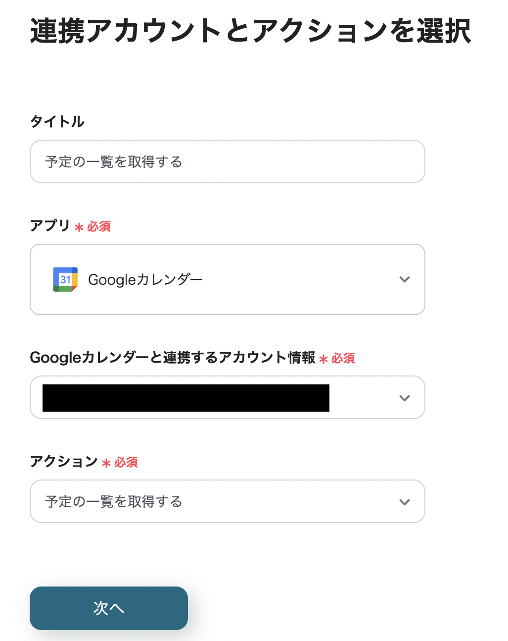 「Googleカレンダーと連携するアカウント情報」:合っているか確認