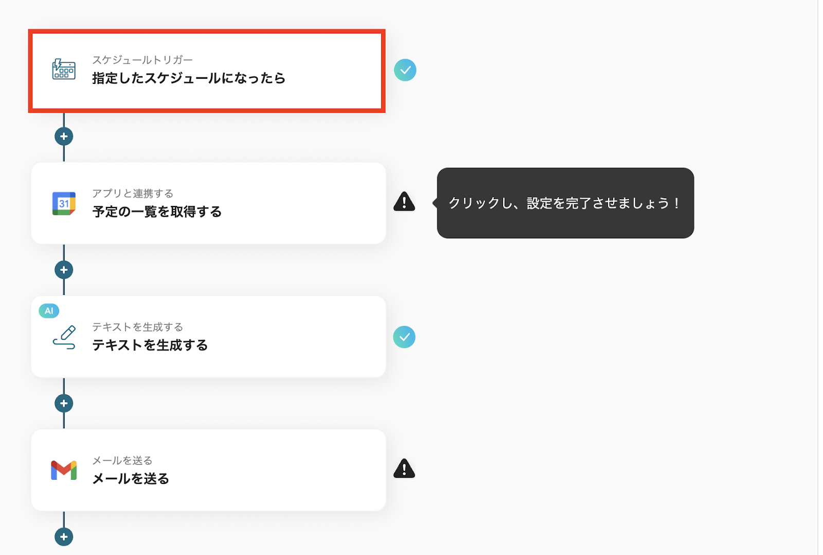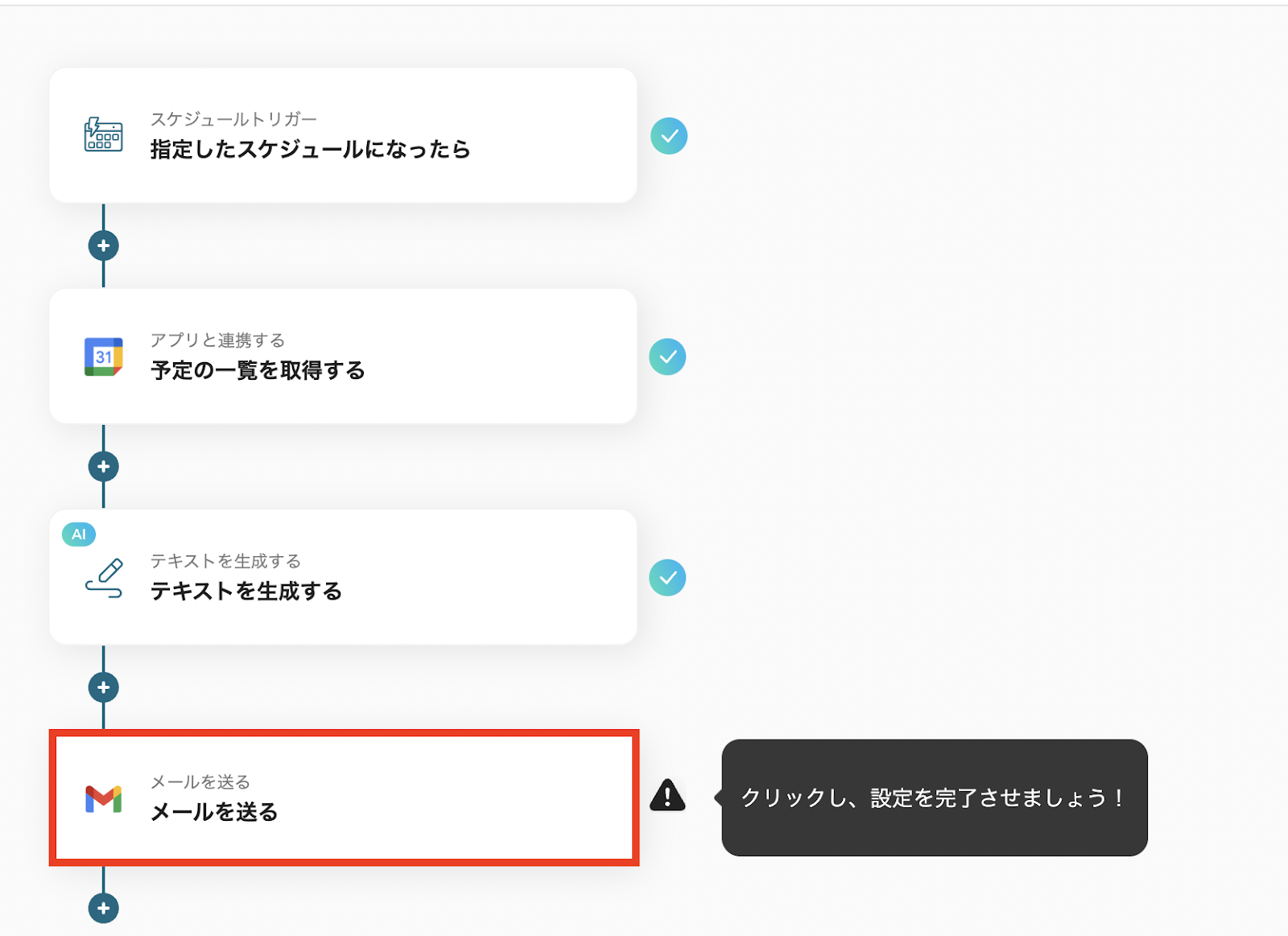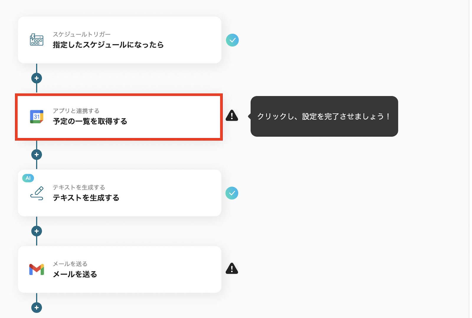 日報の場合は、Googleカレンダーから情報を抽出し、Gmailで送信するフローでしたが、このフローのようにGmailから情報を抽出し、Googleカレンダーに登録することも可能です。