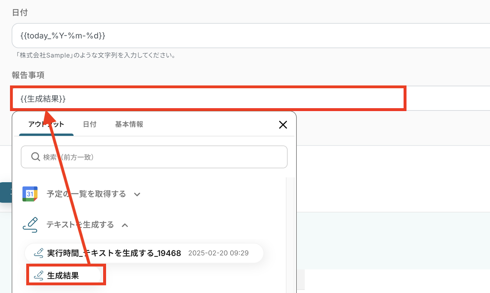 本文には「生成結果」が入っています。