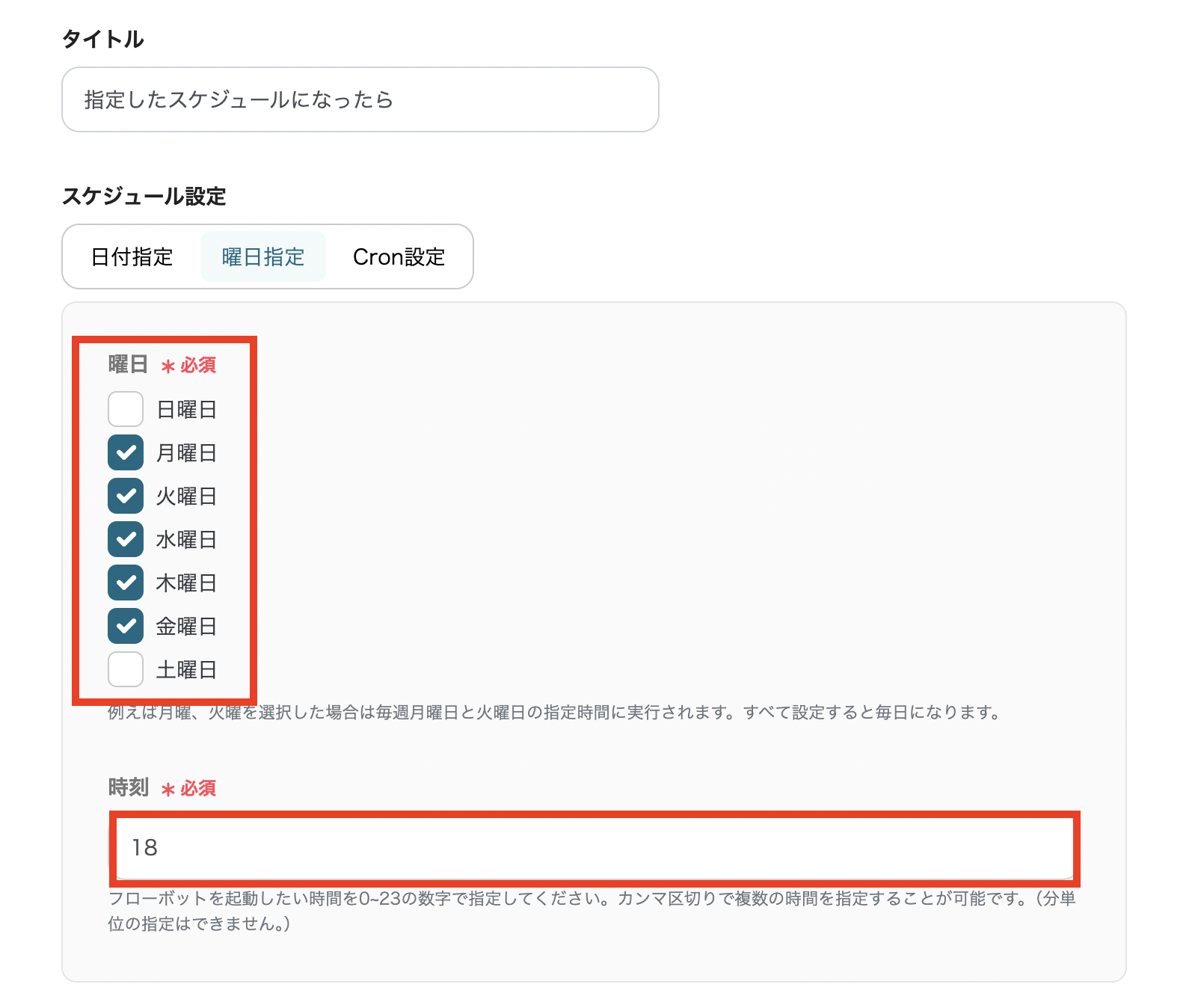曜日や通知の時間は必要に応じて変更してください。