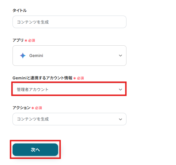 ステップ4:Geminiのアクション設定