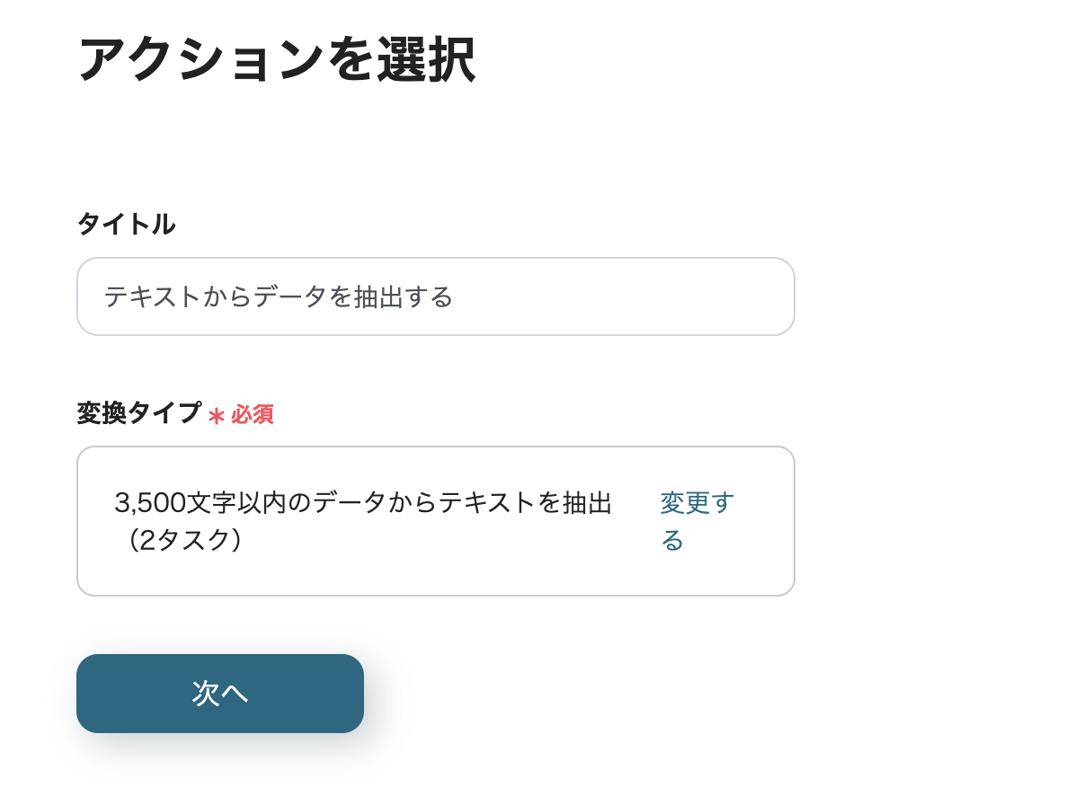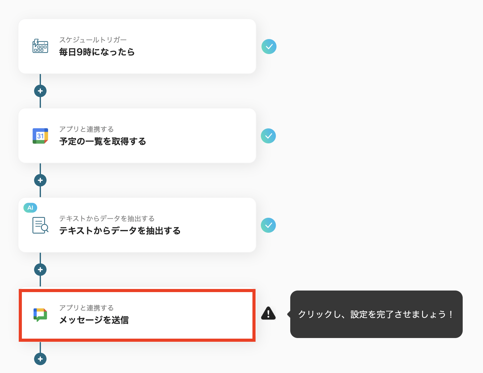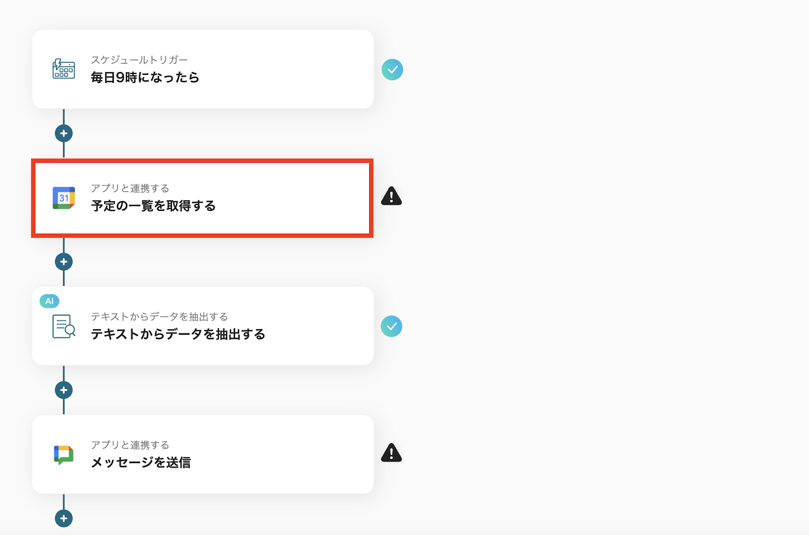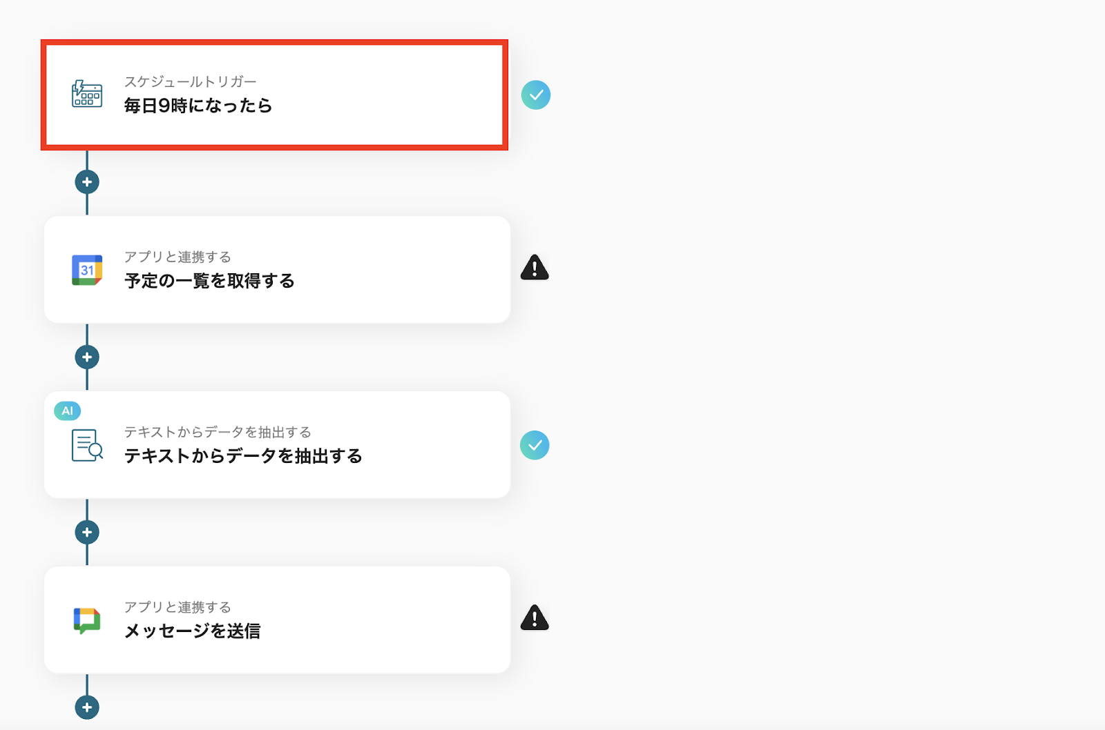 テキストから抽出したデータ(ステップ4)を活用することで、タスクごとのタイトルと開始時間をそれぞれ設定することが可能です。