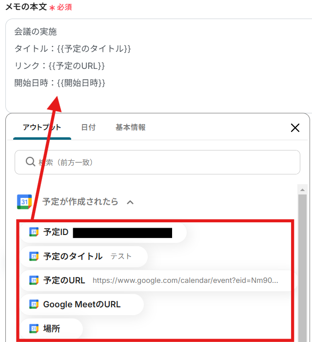 予定の作成と同時にメモを自動で追加できるので、手作業の手間が軽減します。