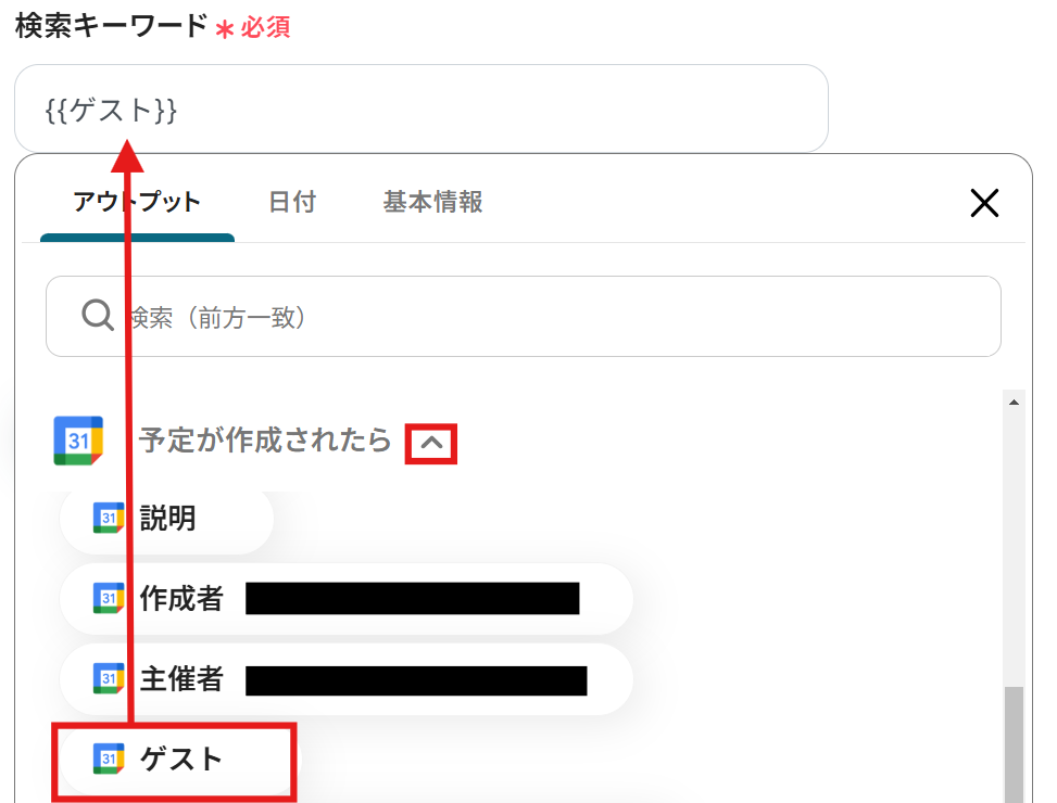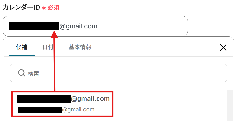 枠内をクリックすると候補が表示されるので、該当するIDを選択してください。