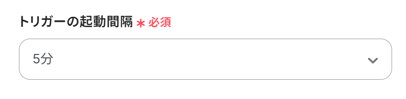・トリガーは5分、10分、15分、30分、60分の間隔で起動間隔を選択できます。
