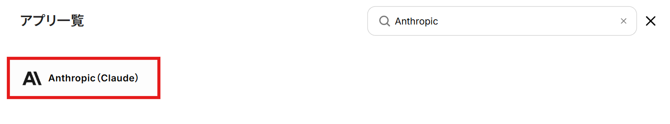 次にAnthropic(Claude)の連携を進めていきましょう。 検索ボックスにAnthropic(Claude)と入力し、アプリをクリックしてください。
