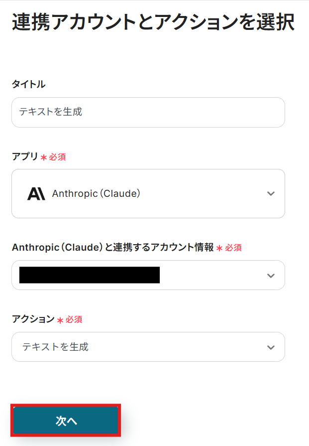 ステップ4:Anthropic(Claude)でテキストを生成するアクション設定