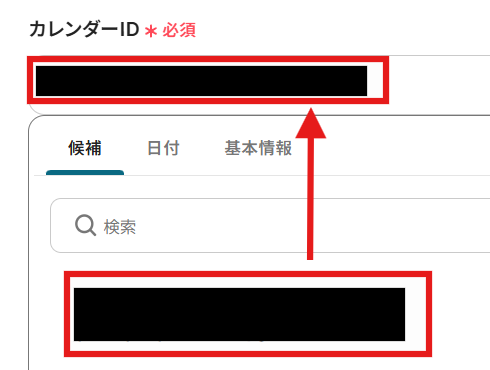 次に、カレンダーIDを候補の中から選んで入力します。