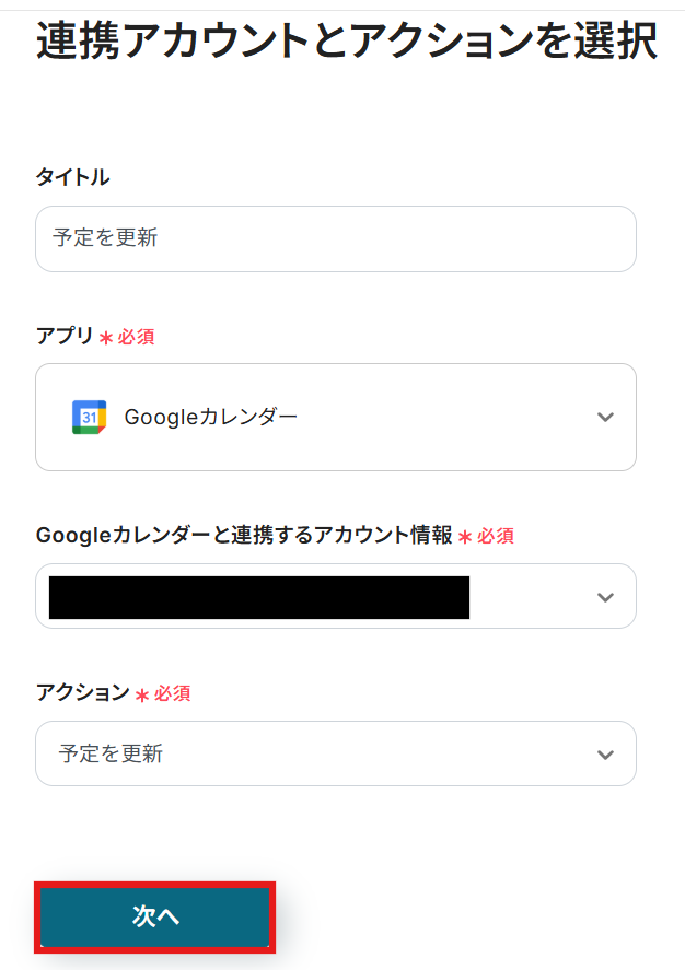 ステップ5:Googleカレンダーの予定を更新するアクション設定
